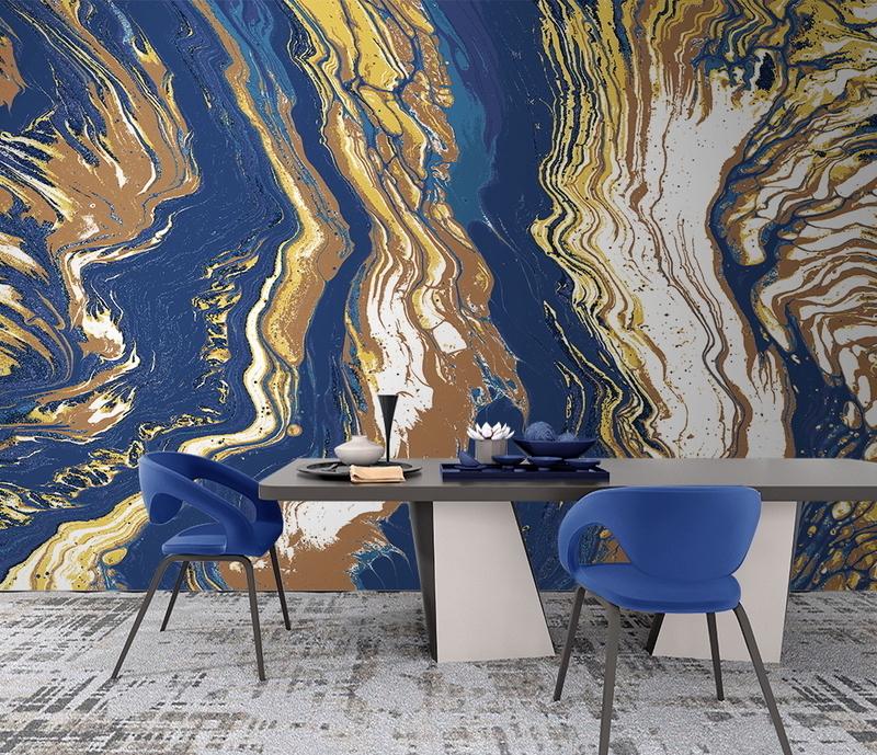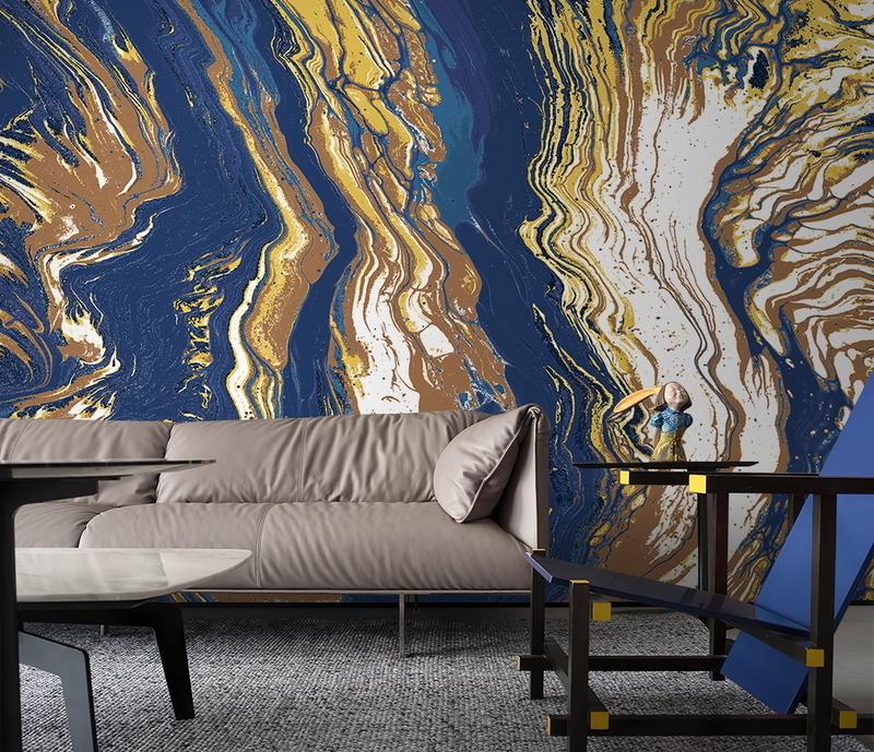Tapeta Fototapeta dynamiczne fale błękitno-żółte (artykuł a127 ) z kategorii Fototapety Marmur